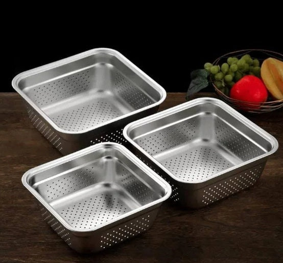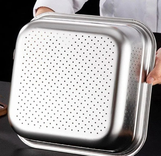 احصل على أداء عالي لتصفية مختلف أنواع الأطعمة مع مصفاية مشخلة استانلس ستيل بشكل مربع ومتعددة الاستخدامات.